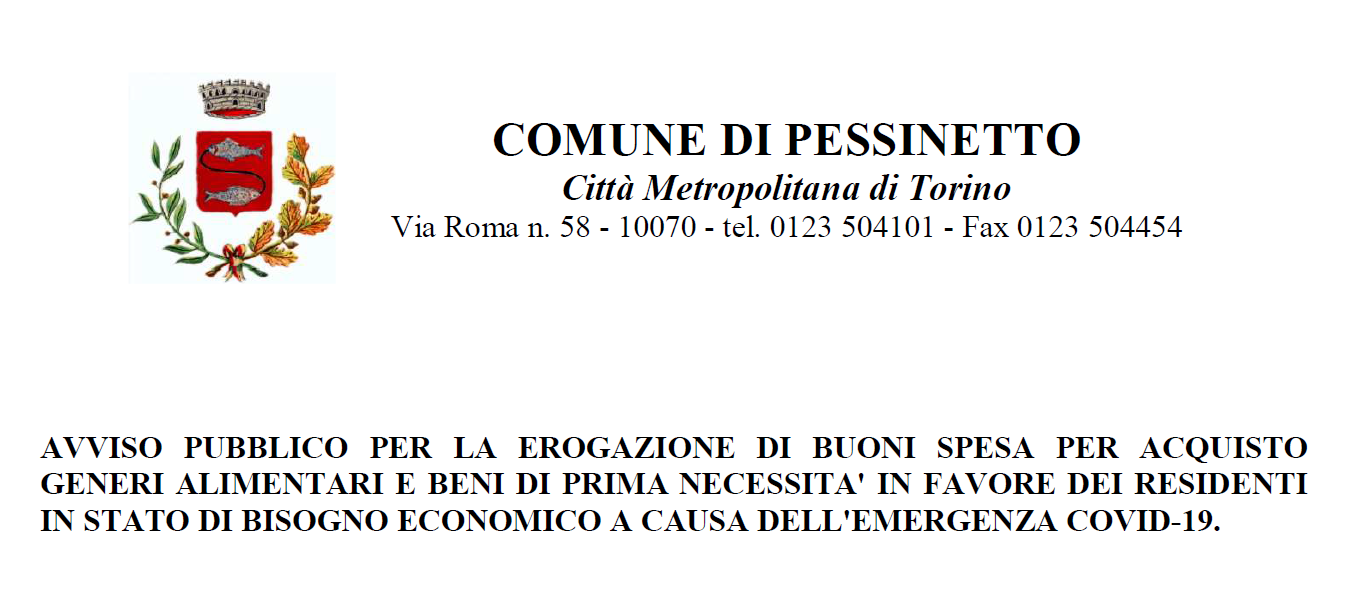 Di seguito il testo dell'avviso pubblico per l'erogazione di buoni spesa per acquisto di generi alimentari e di prima necessità in favore dei residenti in stato di bisogno economico a causa dell'emergenza Covid-19.